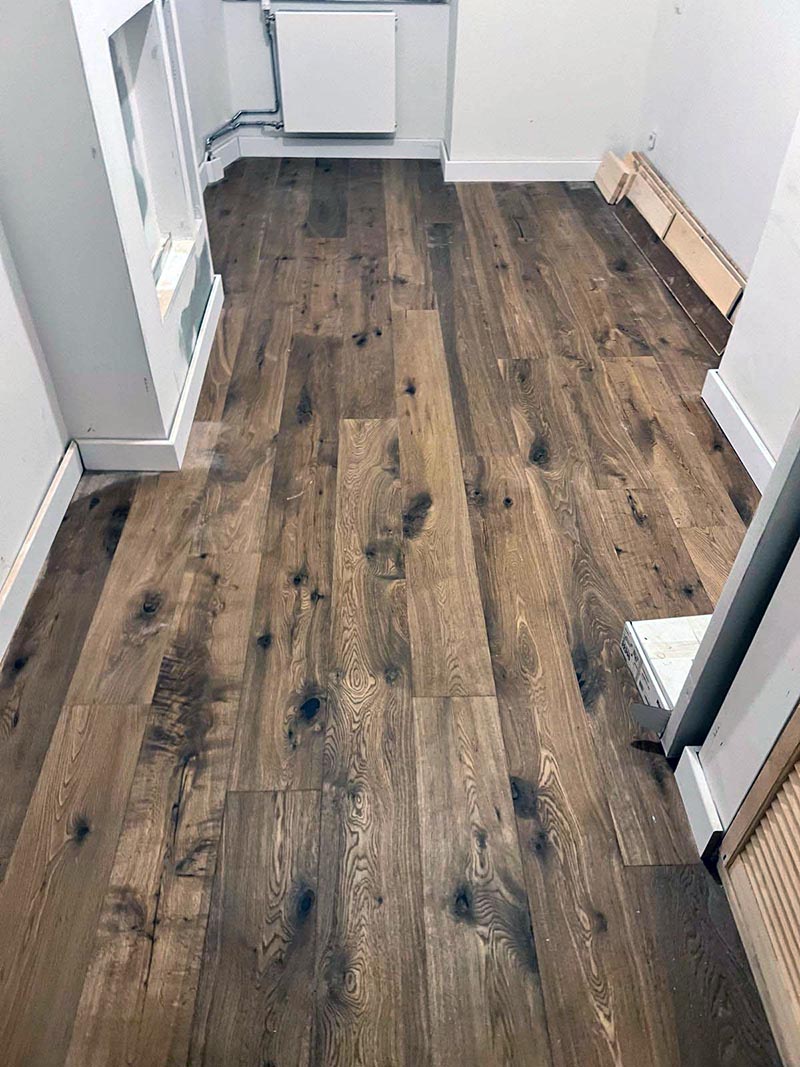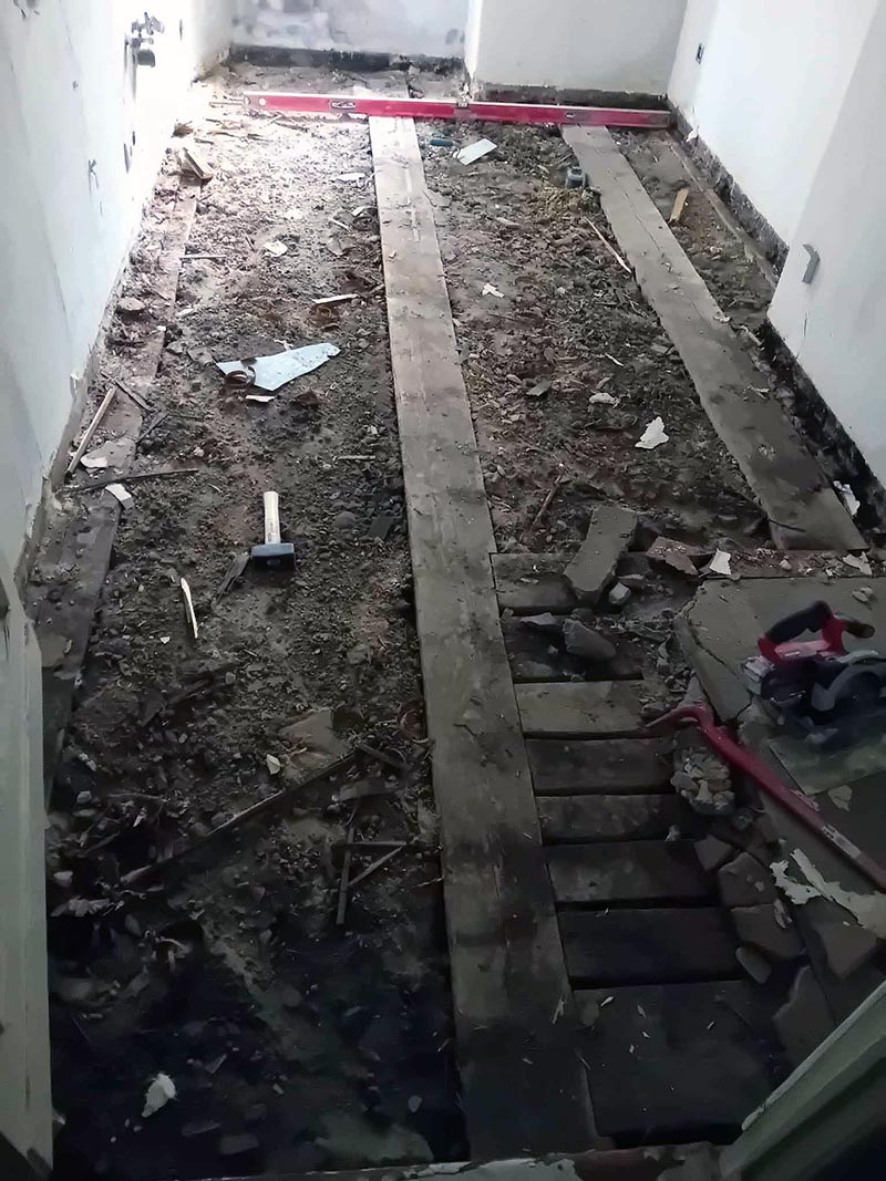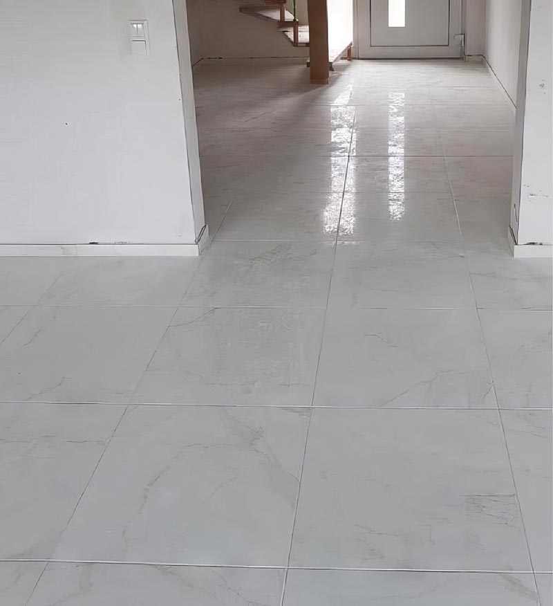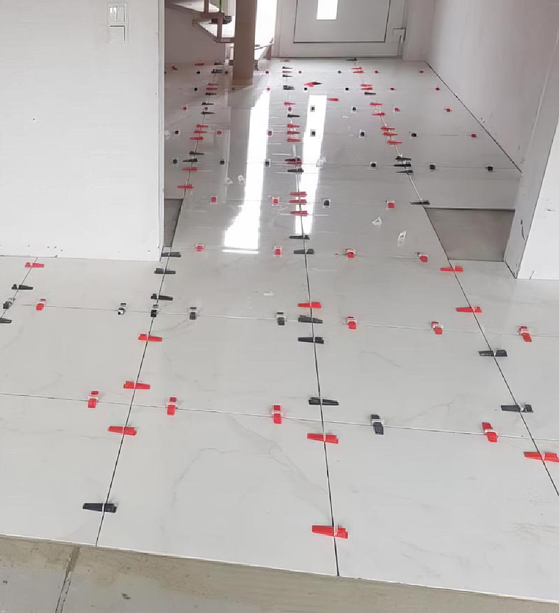 - Anschließend werden die Fliesen mit Abstandshaltern ausgelegt